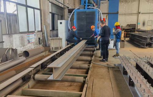 鋼結(jié)構(gòu)拋丸機(jī)工作原理:???? 鋼結(jié)構(gòu)拋丸機(jī)是將工件吊放在輸送輥道上,輥道輸送系統(tǒng)將工件向前輸送,當(dāng)工件...